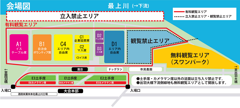 酒田の花火会場図(画像引用元:酒田の花火公式サイト